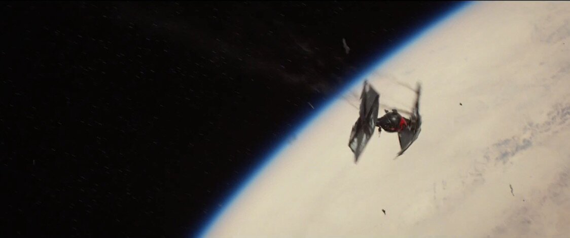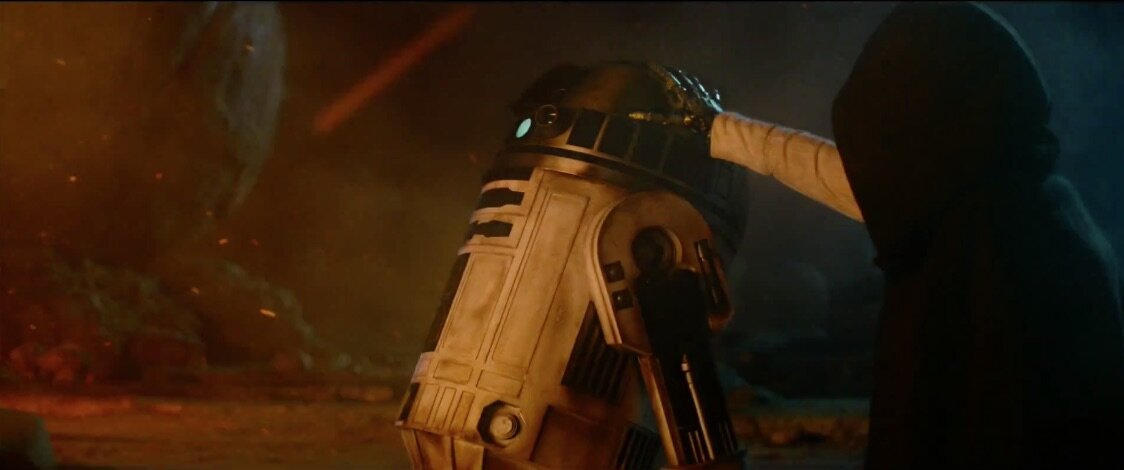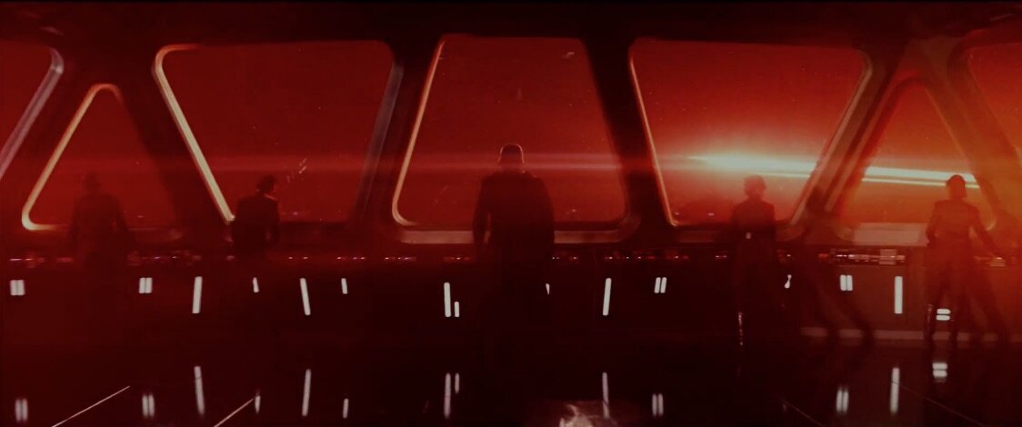 Corta para Kylo Ren, declarando que «nada se vai meter no nosso caminho» e que «iremos acabar o que tu começaste» – a olhar para o desfigurado capacete de Darth Vader, presumivelmente recuperado da pira funerária no fim de O Regresso de Jedi.