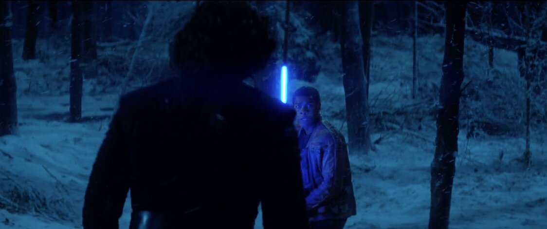 E por fim, Finn contra Kylo Ren – o jovem herói realmente parece fora do seu elemento, e em grande perigo.