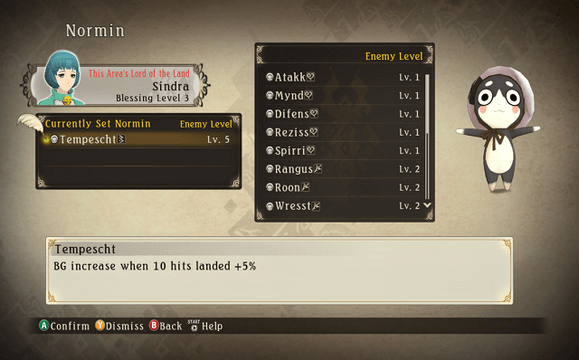 Se mesmo assim precisarem de uma ajuda extra, podem sempre pedir ao vosso Lord of the Lands, e aos vossos amigos Normins, que encontraram na viagem. Estes fazem com que a probabilidade de uma certa skill presente num equipamento aumente. Por exemplo, ao equipar o Normin Tempescht, faz com que o equipamento encontrado depois das batalhas tenha a skill Tempescht.